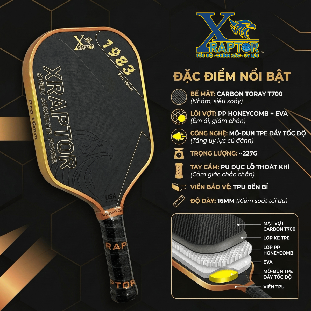 XRaptor là thương hiệu vợt pickleball được phát triển để phục vụ người chơi tại Việt Nam với triết lý:
